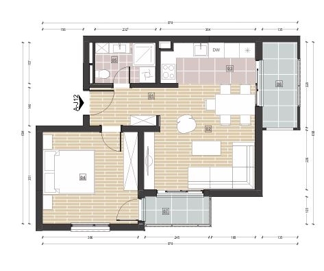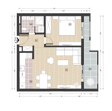Stan A-D1, površine 88,10 m², pažljivo je projektovan kako bi pružio maksimalan komfor i uživanje u svakodnevnom životu. Sastoji se od prostrane dnevne zone, dvije spavaće sobe, dva kupatila i čak dvije terase sa kojih se pruža očaravajući pogled na more.